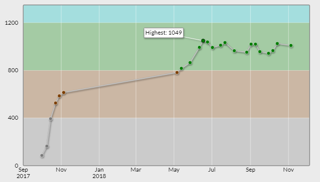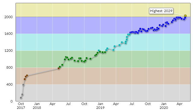 いきなり自慢のようなものを垂れ流していますが(そもそも色変記事なんて自慢が本質な気もしますが)これには意図があって、僕の推移は、同じように緑や水で停滞して苦しんでいる方々の励みになり得るものだと思っています。思い上がりかもしれません。ただ、統計的な根拠から「黄色以上になれる人はみんな水まではあっさり上がってる」なんて言われたらそれなりの絶望感があるかと思うのですが、その反例のひとつとはなれているのではないでしょうか。